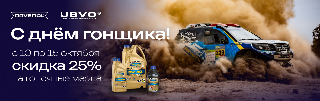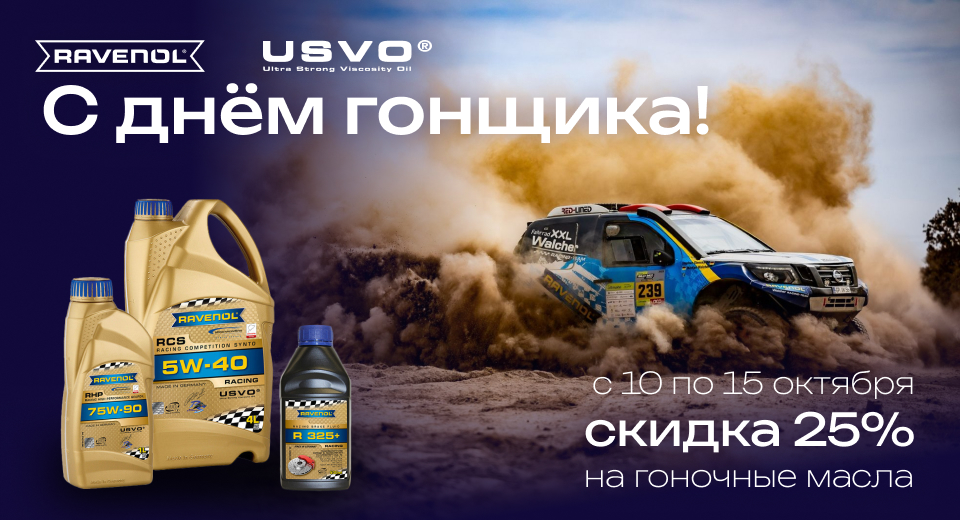 Скидка 25% в честь Дня Гонщика на все гоночные масла RAVENOL